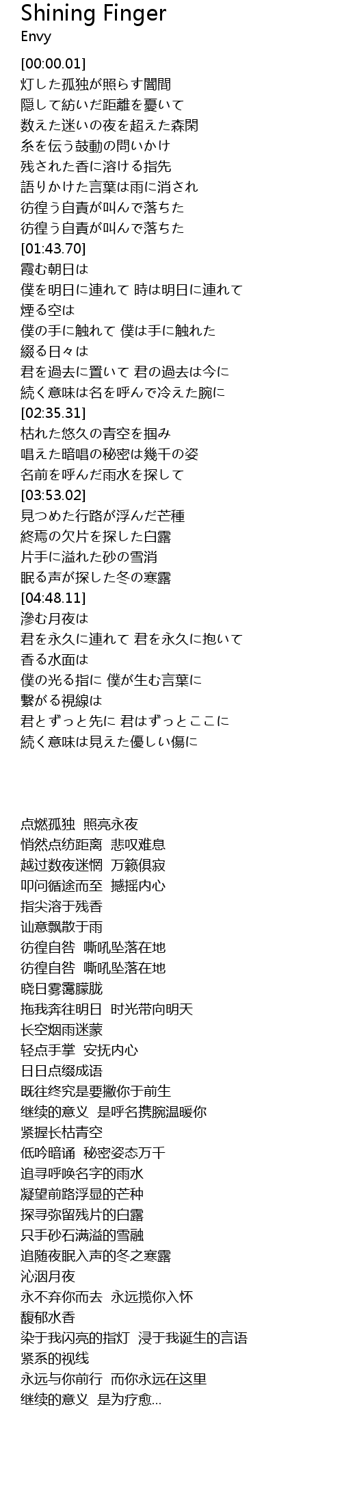 | [02:21.42] | 続く意味は名を呼んで冷えた腕に |
