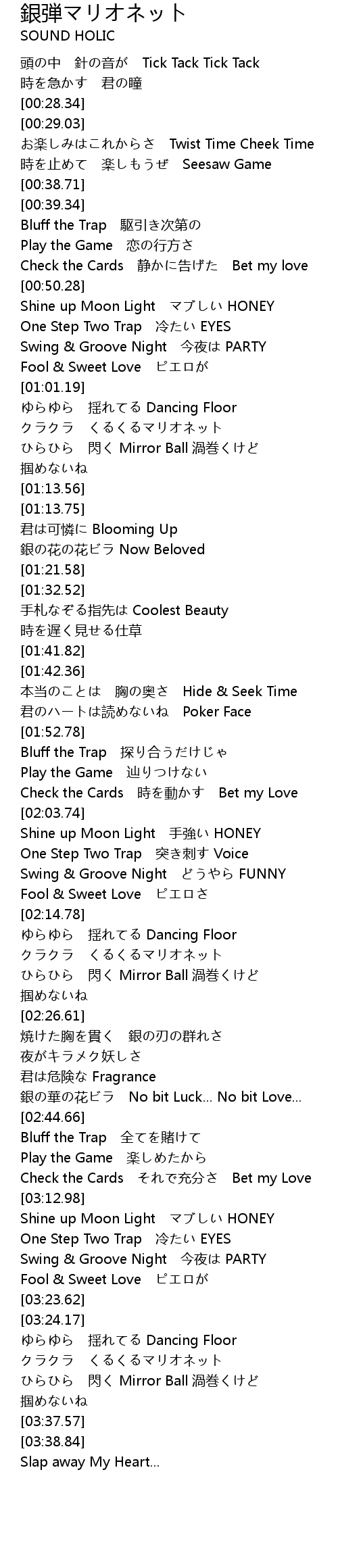 | [02:39.29] | 銀の華の花ビラ No bit Luck... No bit Love... |