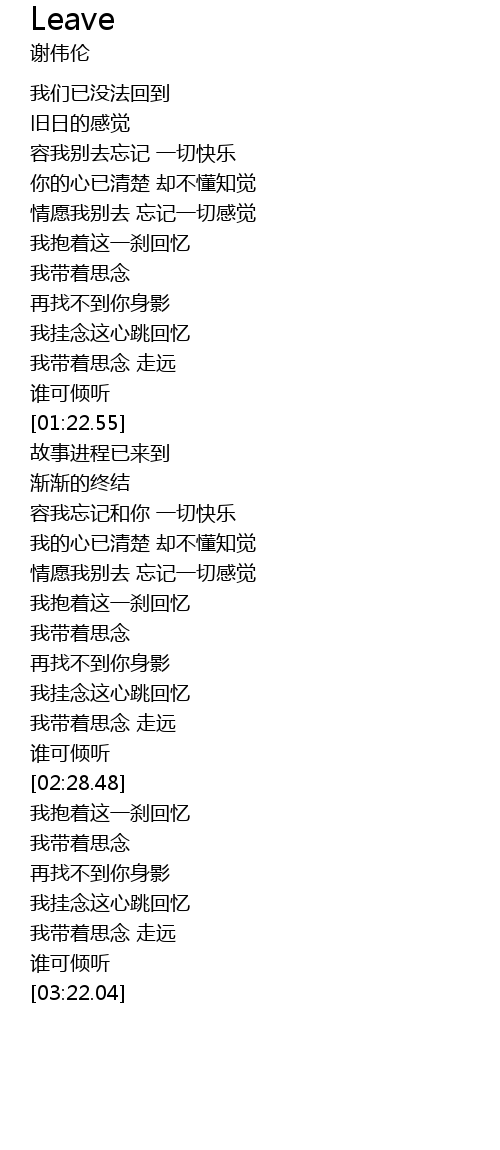 [03:12.85] wǒ dài zhe sī niàn zǒu yuǎn