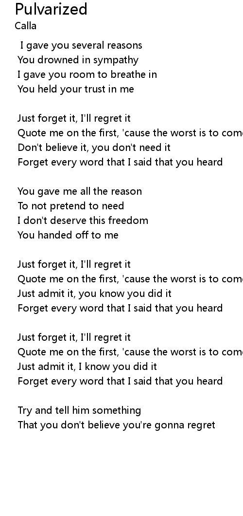 Just forget it, I'll regret it |