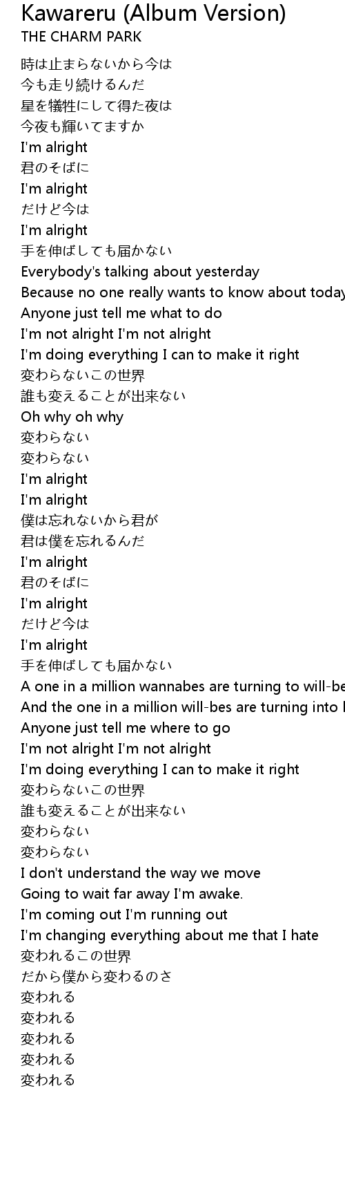 | [02:13.45] | And the one in a million will-bes are turning into has-beens |