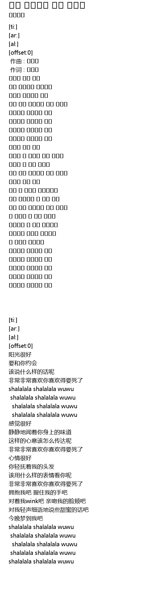 샤랄랄라 샤랄랄라 우우 |