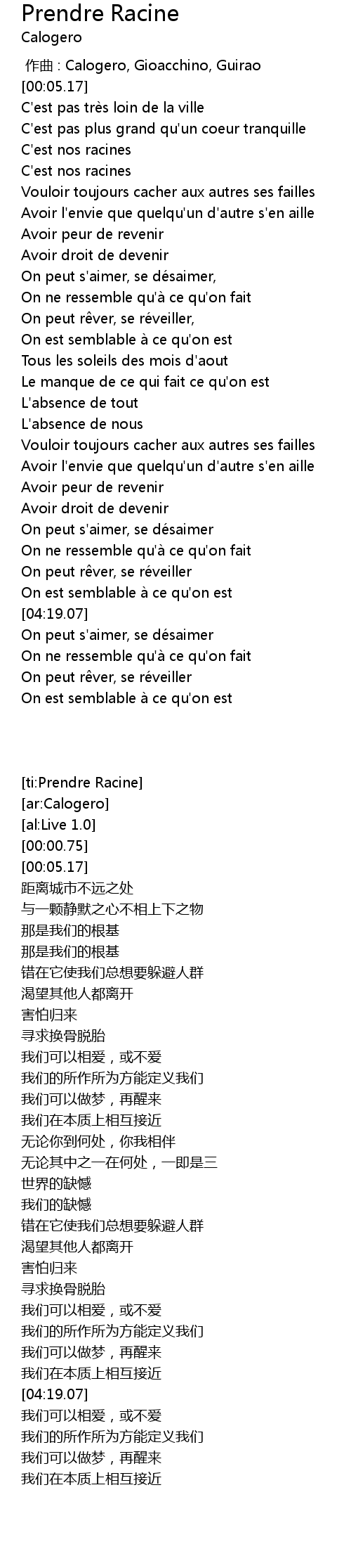 | [ti:Prendre Racine] | |