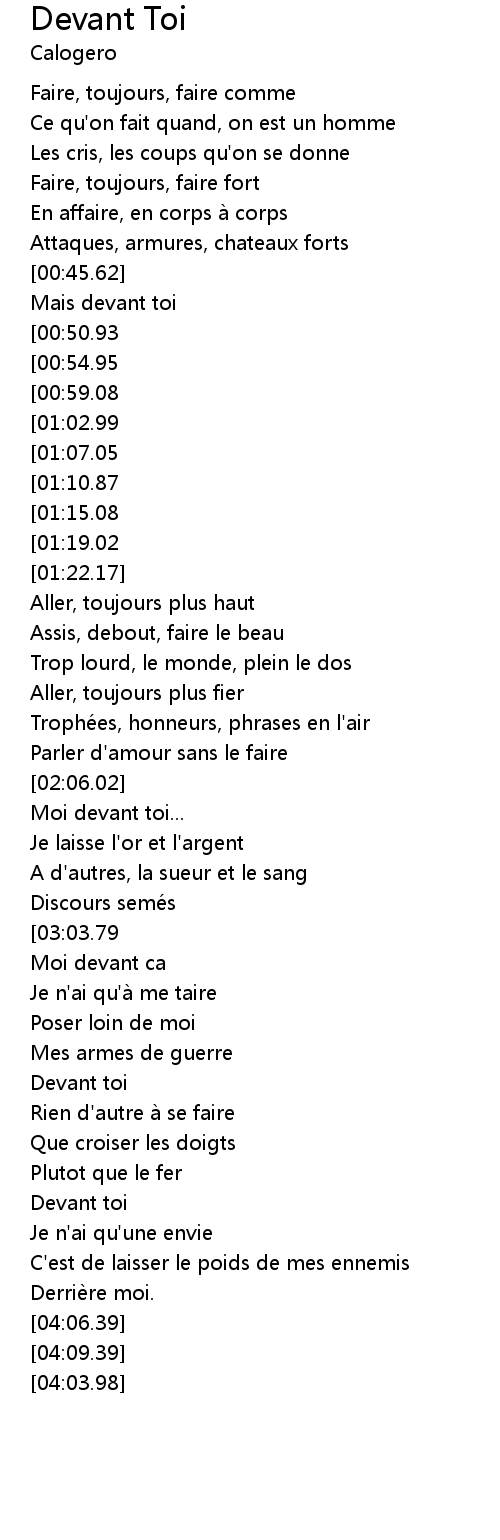| [03:50.83] | C' est de laisser le poids de mes ennemis |