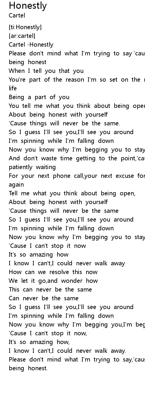 | [00:14.684] | Please don't mind what I'm trying to say 'cause I'm,I'm being honest |