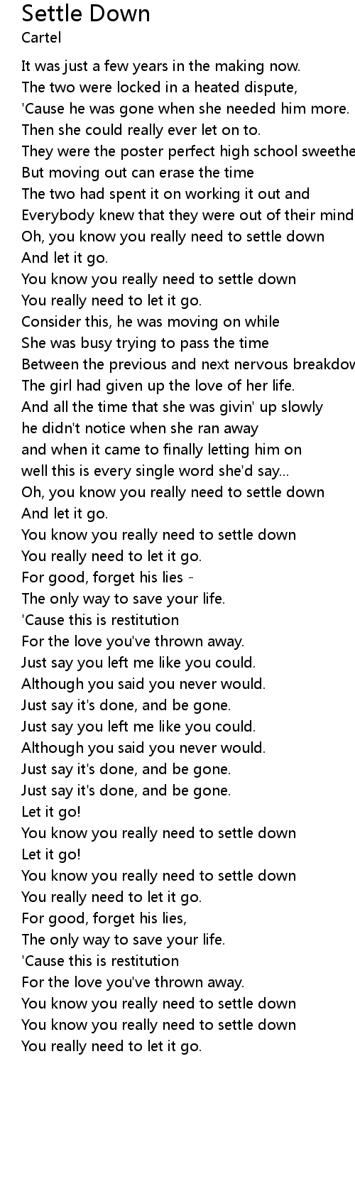 | Oh, you know you really need to settle down | |