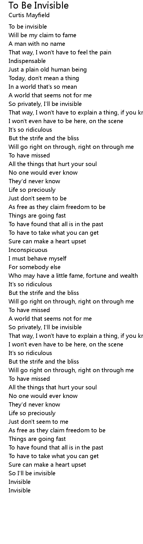 To Be Invisible 歌词