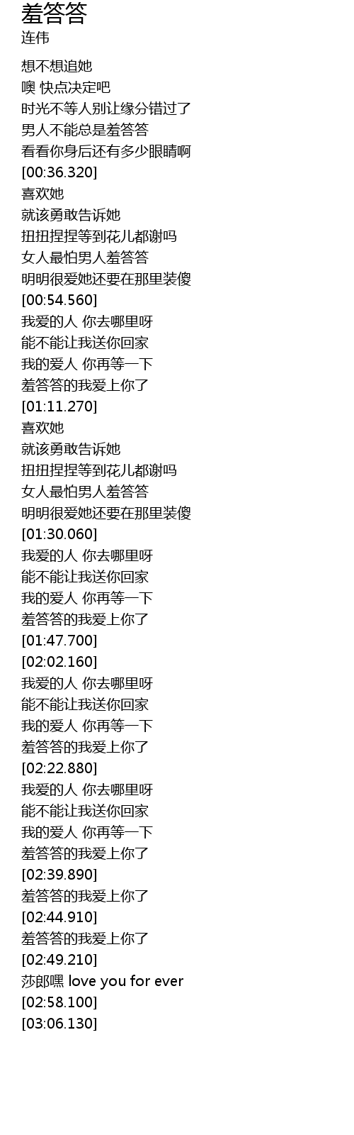 | [02:49.790] | 莎郎嘿 love you for ever |