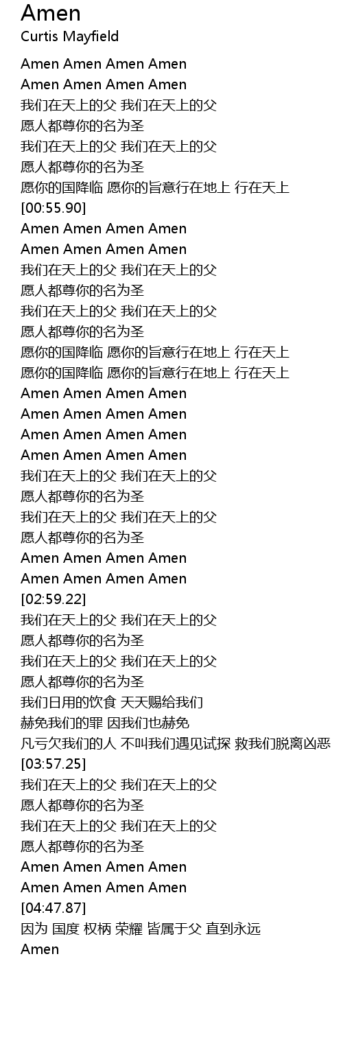| [04:12.07] | 我们在天上的父 我们在天上的父 |