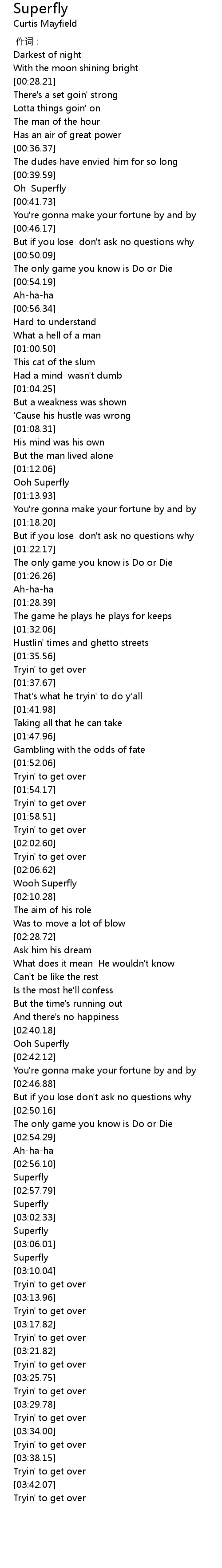 | [03:01.41] | Superfly |
