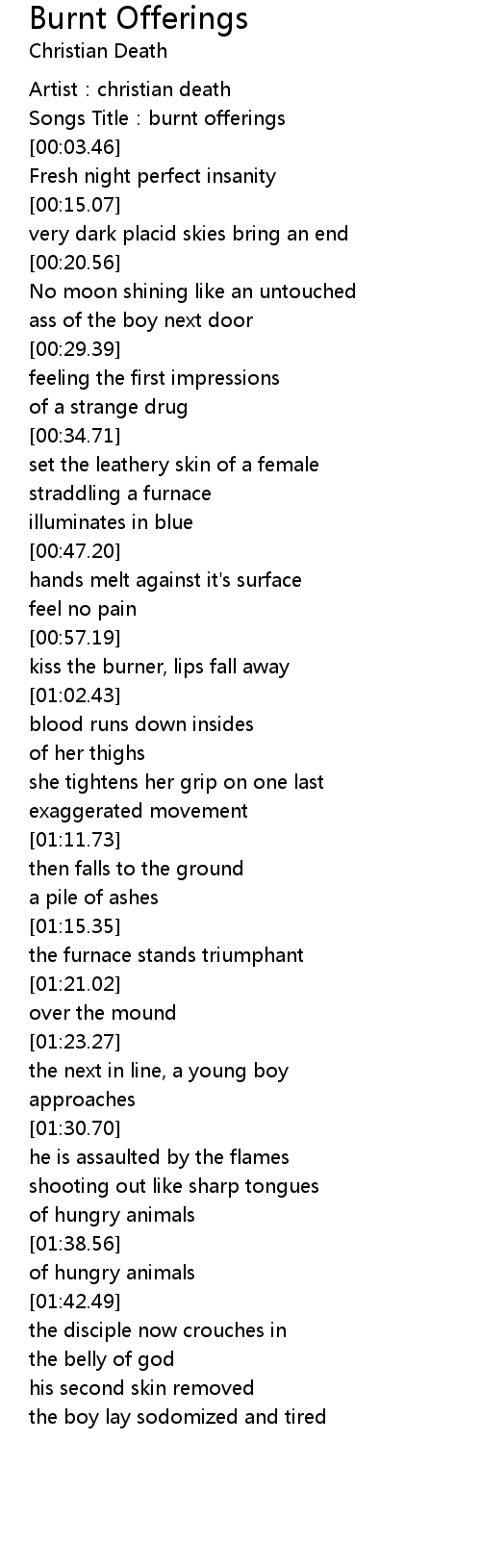 | [00:01.96] | Songs Title: burnt offerings |