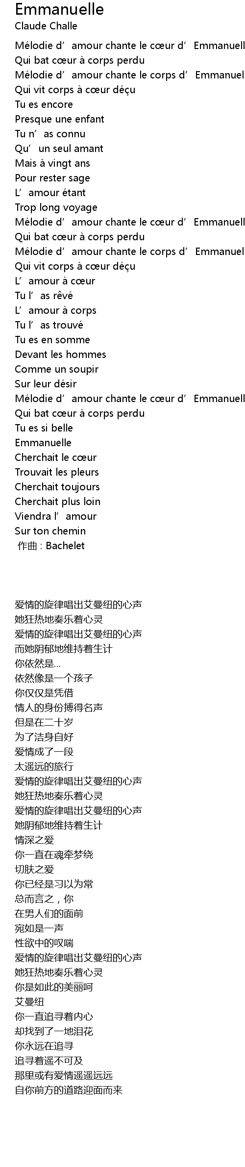 | [01:33] | 爱情的旋律唱出艾曼纽的心声 |