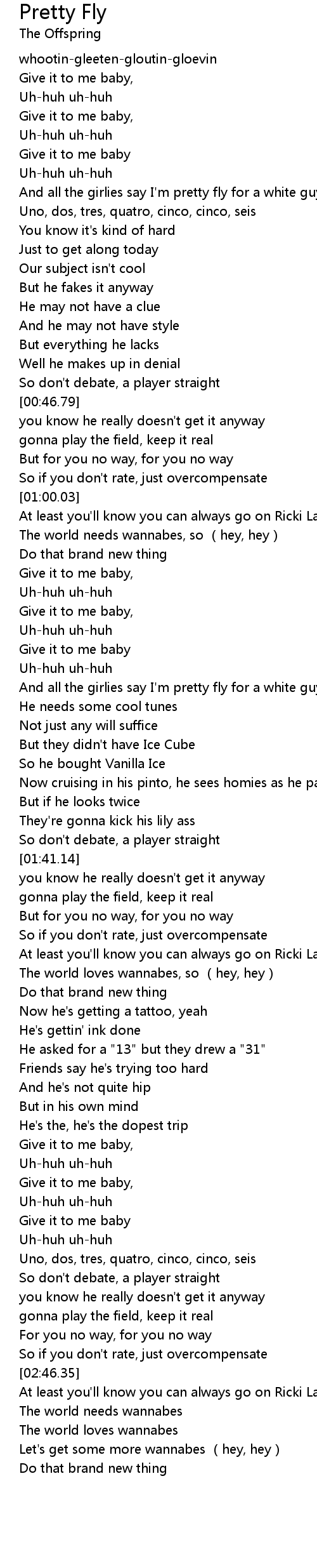 | [01:21.56] | And all the girlies say I' m pretty fly for a white guy |