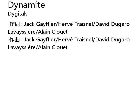 | [00:00.000] | 作词 : Jack Gayffier/Hervé Traisnel/David Dugaro/Jean-Marc Lavayssière/Alain Clouet |