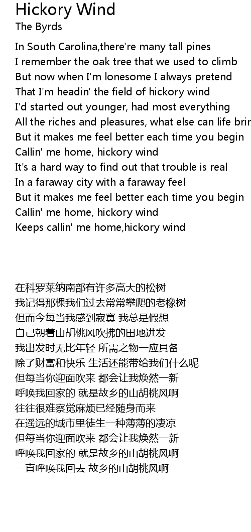 Callin' me home, hickory wind |