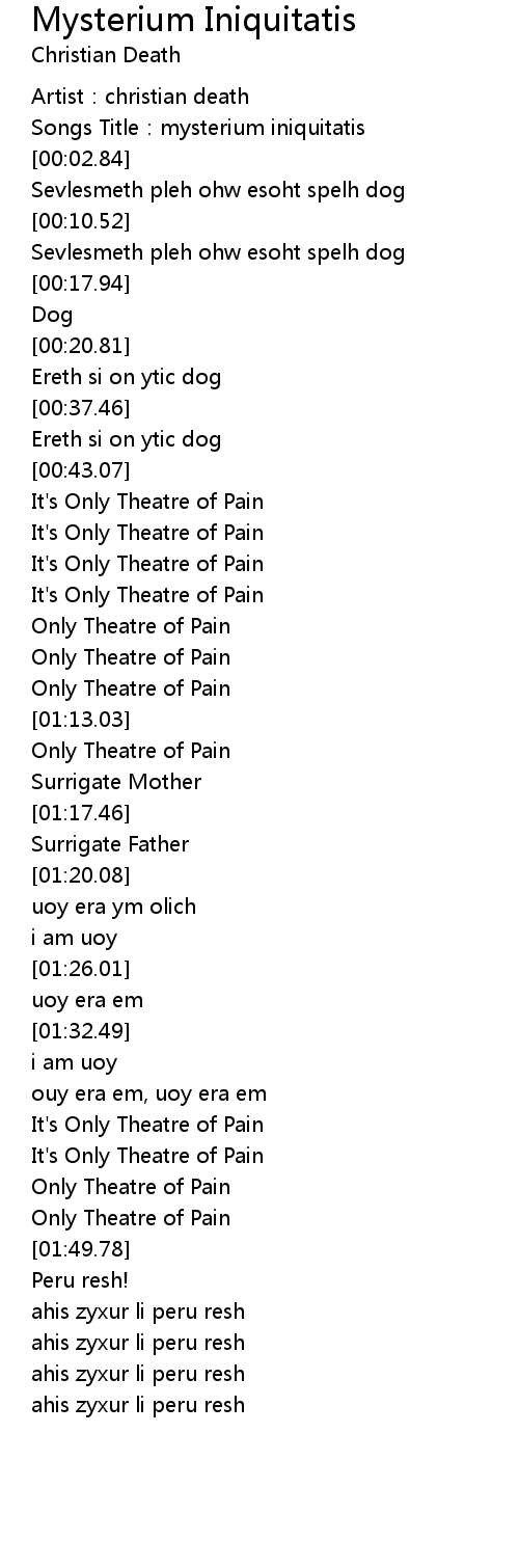 | [00:01.59] | Songs Title: mysterium iniquitatis |
