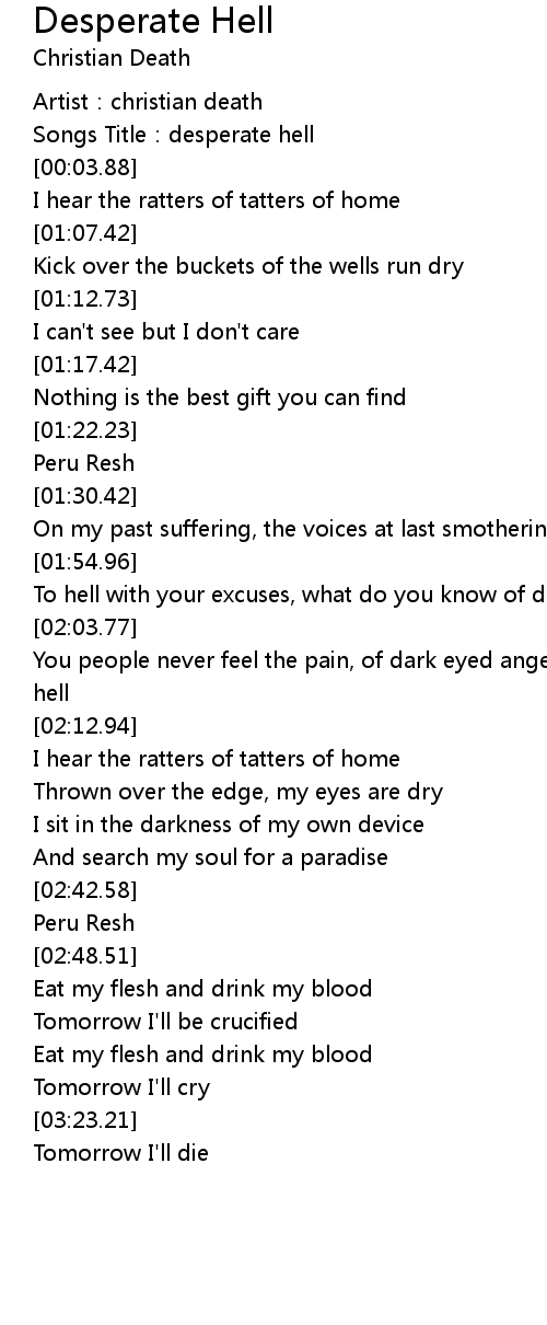 | [00:02.32] | Songs Title: desperate hell |