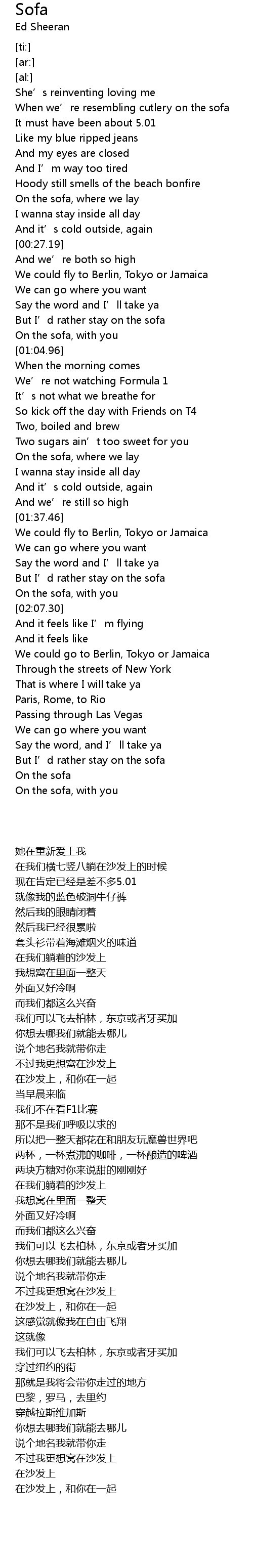| [00:35.03] | We could fly to Berlin, Tokyo or Jamaica |