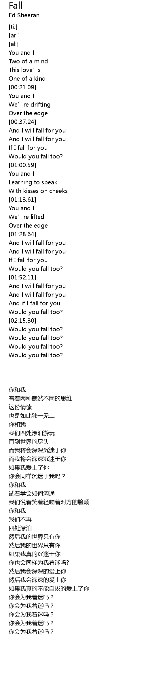 And I will fall for you |