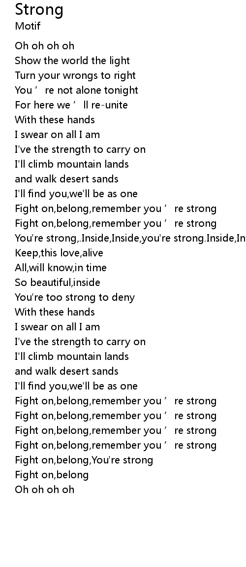 | [03:57.344] | Fight on, belong, remember you ' re strong |