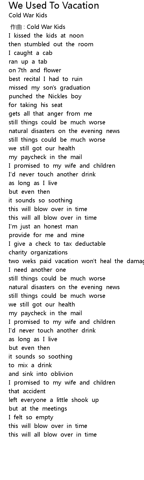 | [01:50.481] | two weks paid vacation won' t heal the damage done |