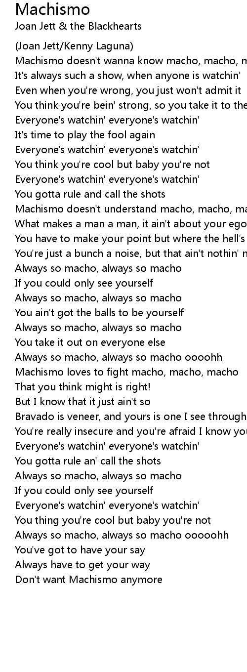 Machismo doesn't wanna know macho, macho, macho |