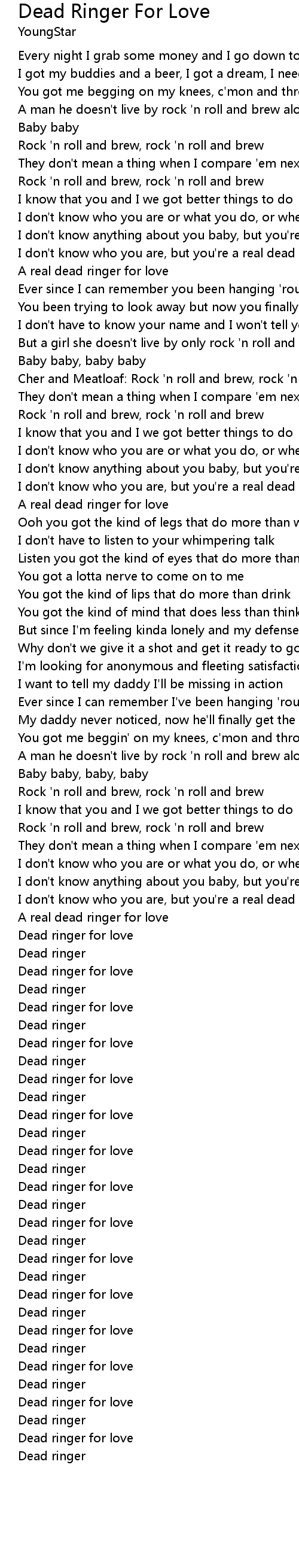 Dead Ringer For Love 歌词