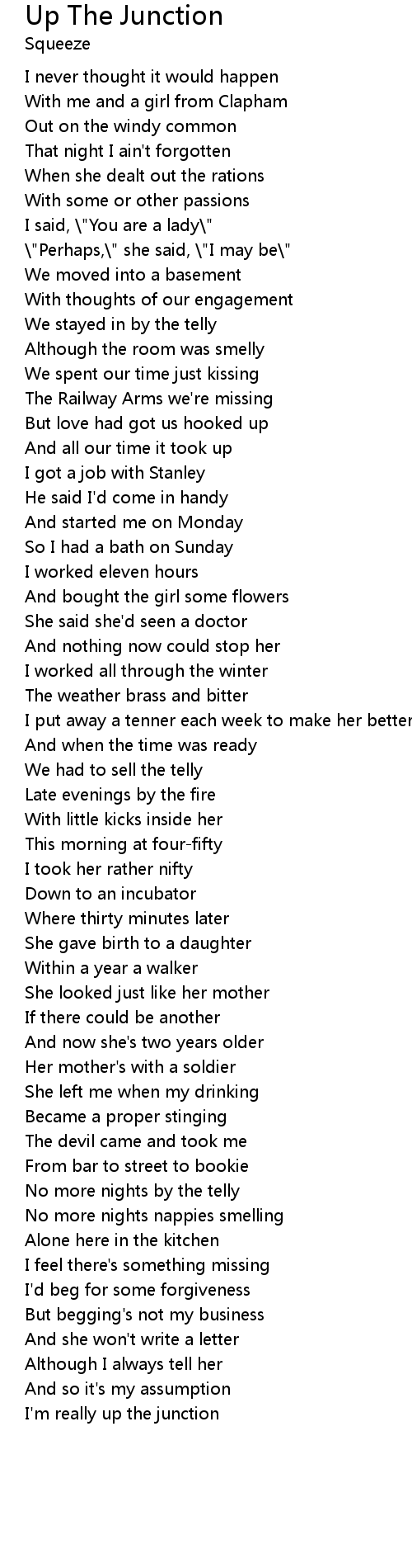 I'm really up the junction |