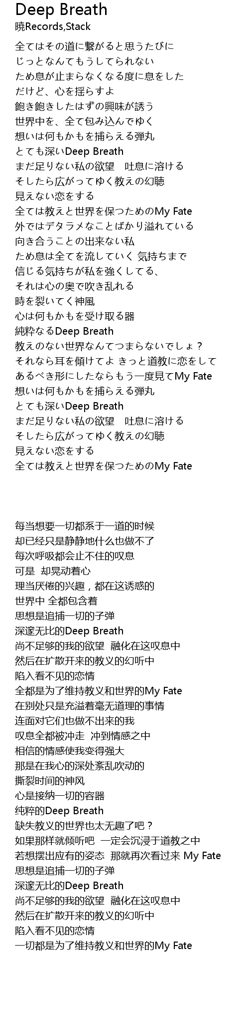 | [02:39.43] | 全ては教えと世界を保つためのMy Fate |