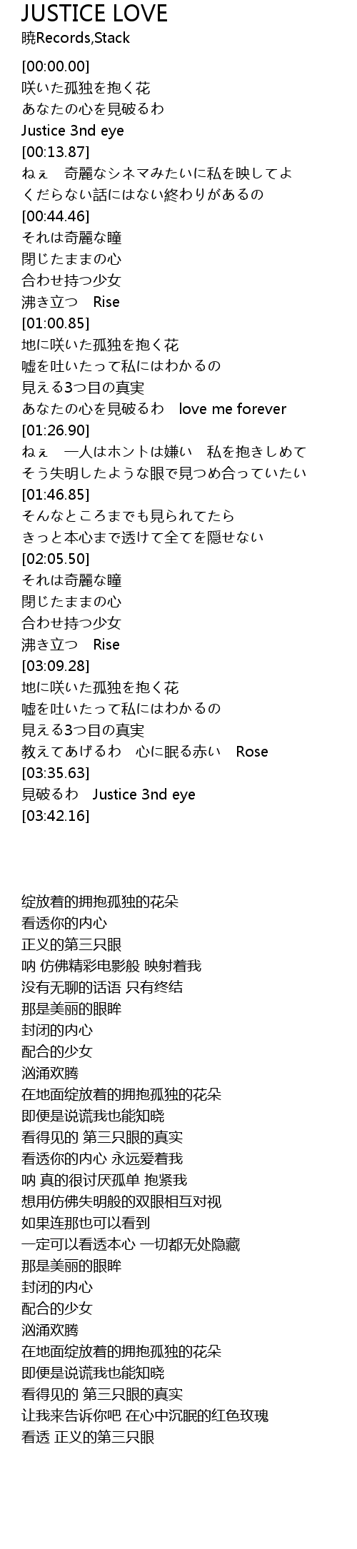 | [03:36.04] | 見破るわ Justice 3nd eye |
