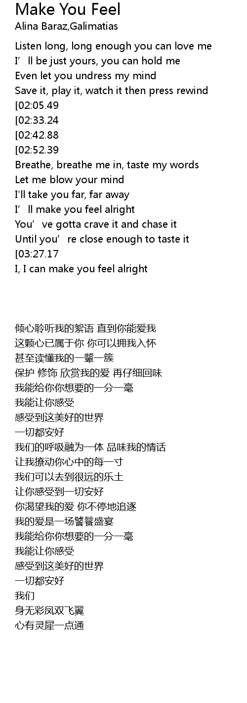 | [01:16.38][02:52.39] | I can make you feel alright |