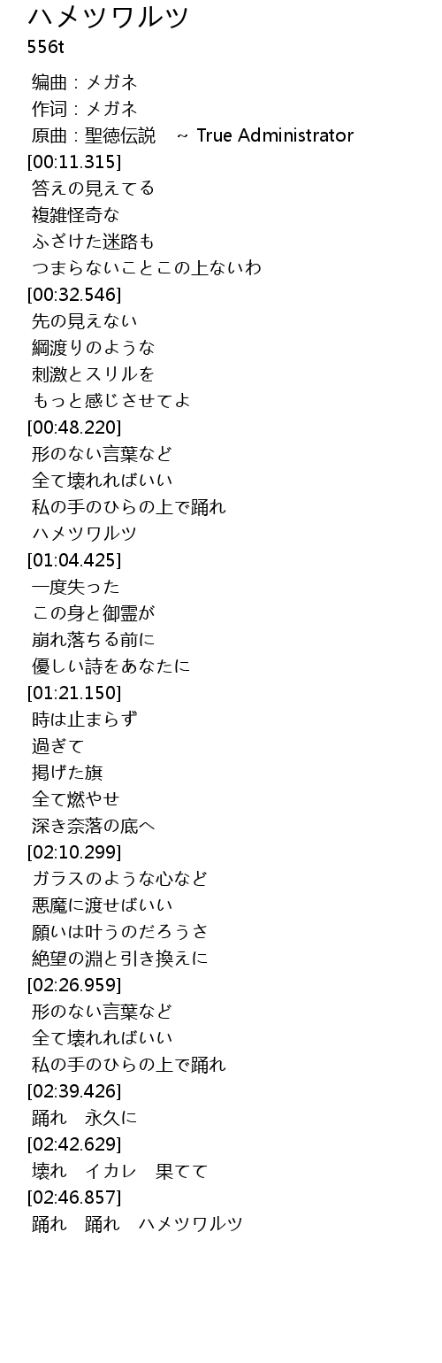 | [02:47.433] | 踊れ 踊れ ハメツワルツ |