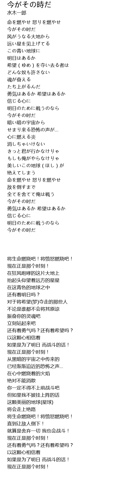 | [00:15.000] | 命を燃やせ 怒りを燃やせ |