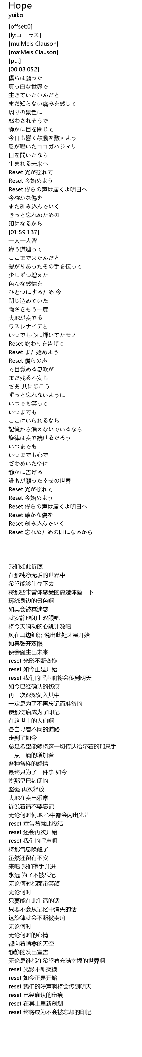 | [04:43.345] | Reset 僕らの声は届くよ明日へ |