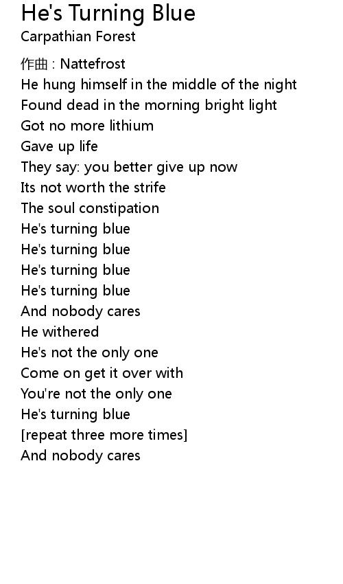 | 歌曲 | He's Turning Blue |