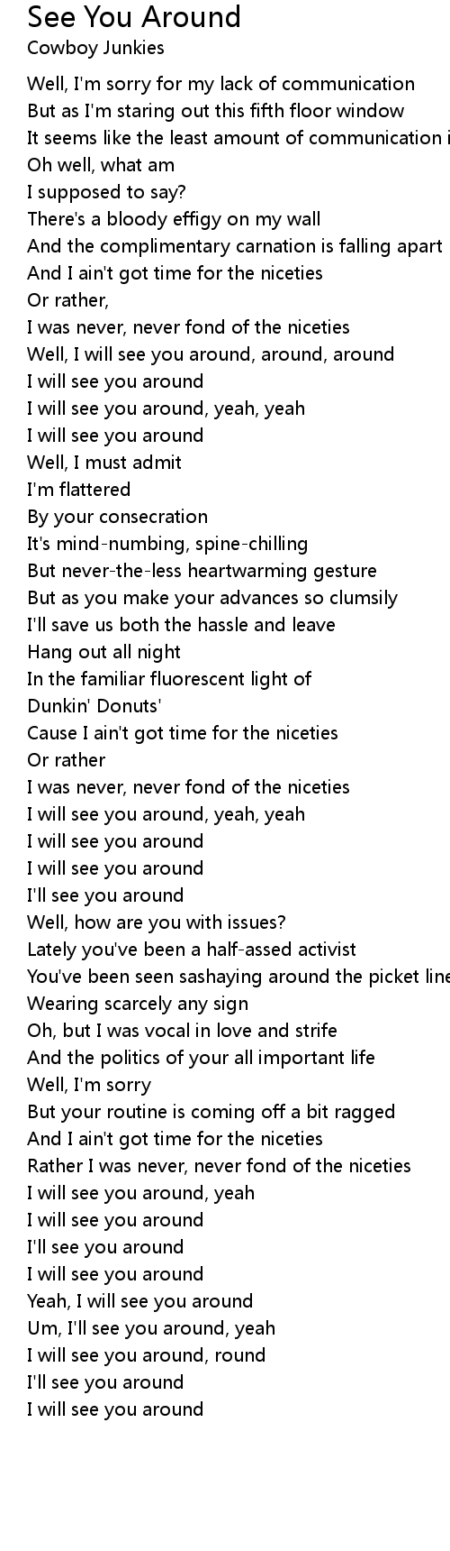 Well, I will see you around, around, around |