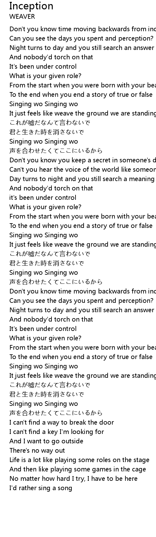 | 歌曲 | Inception |