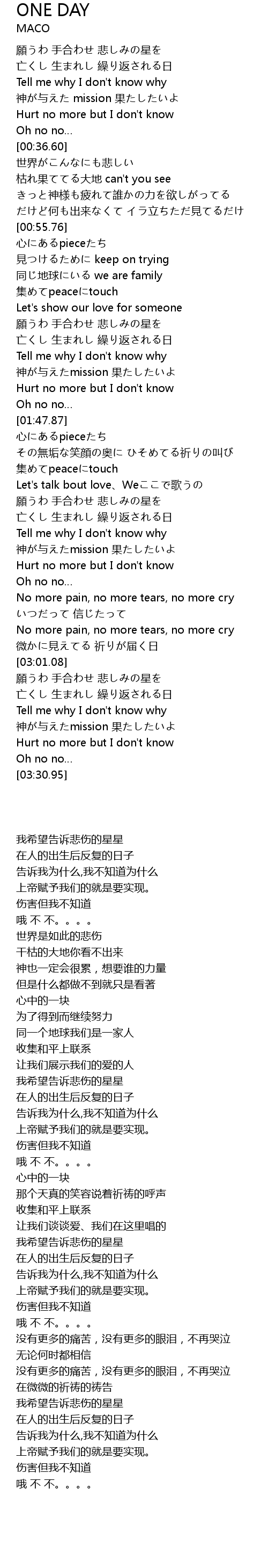 | [01:36.16] | 神が与えたmission 果たしたいよ |