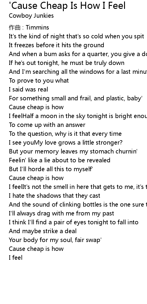 | 歌曲 | 'Cause Cheap Is How I Feel |