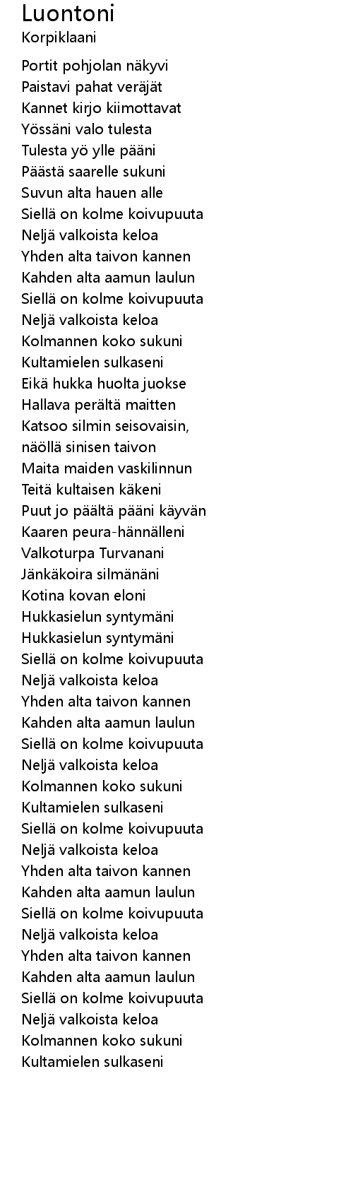 | 歌曲 | Luontoni |