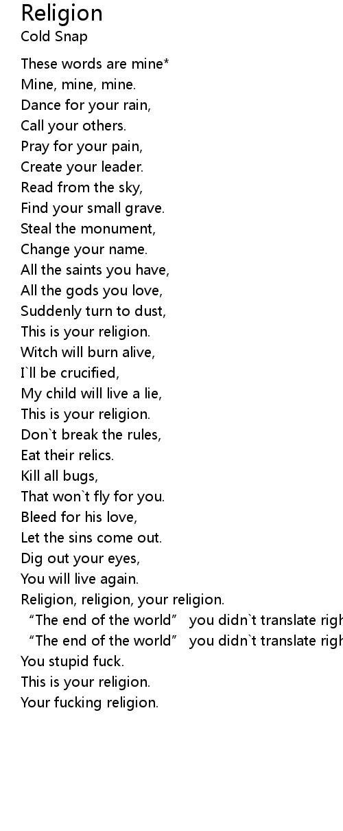 | Your fucking religion. |