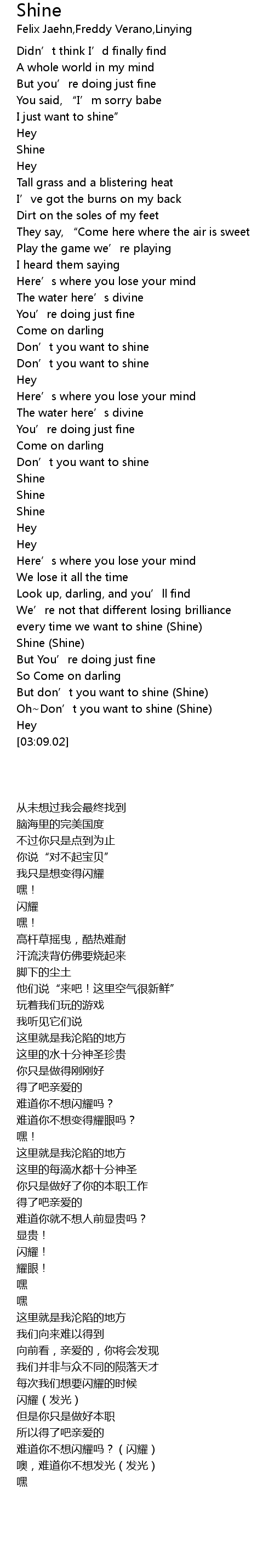 | [02:40.37] | Shine Shine |
