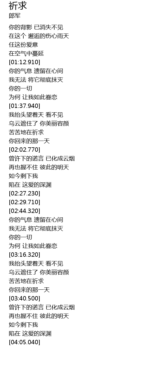 | [03:30.780] | 苦苦地在祈求 |