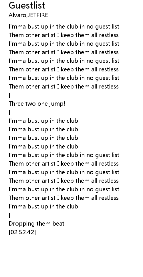 | [02:14.35] | I'mma bust up in the club in no guest list |