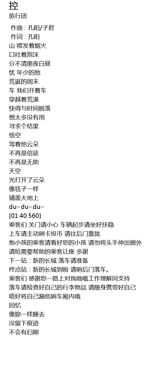 | [00:29.690] | 车 我们开着车 |
