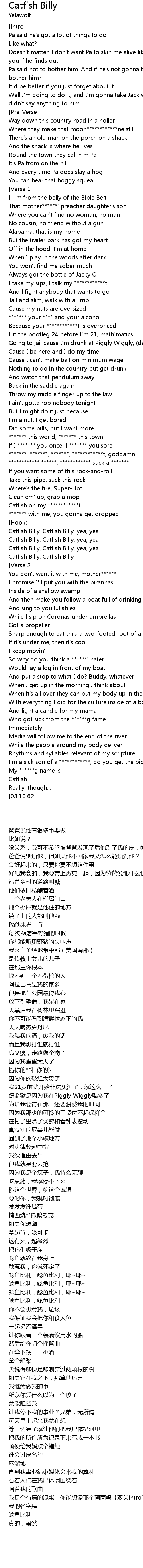 | [02:21.44] | Catfish Billy, Catfish Billy |