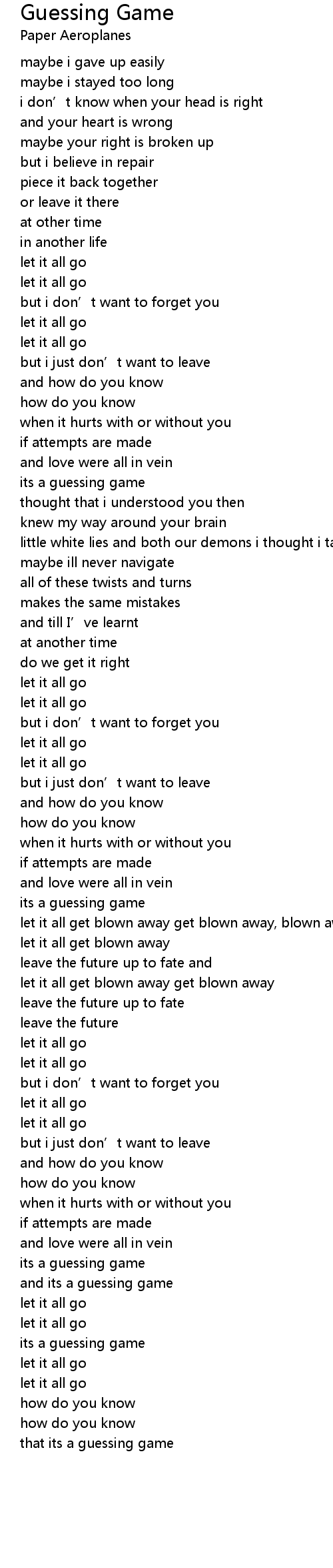 | 歌曲 | Guessing Game |