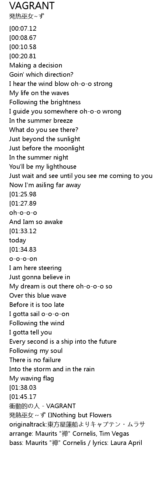 | [02:00.22] | 衝動的の人 - VAGRANT |