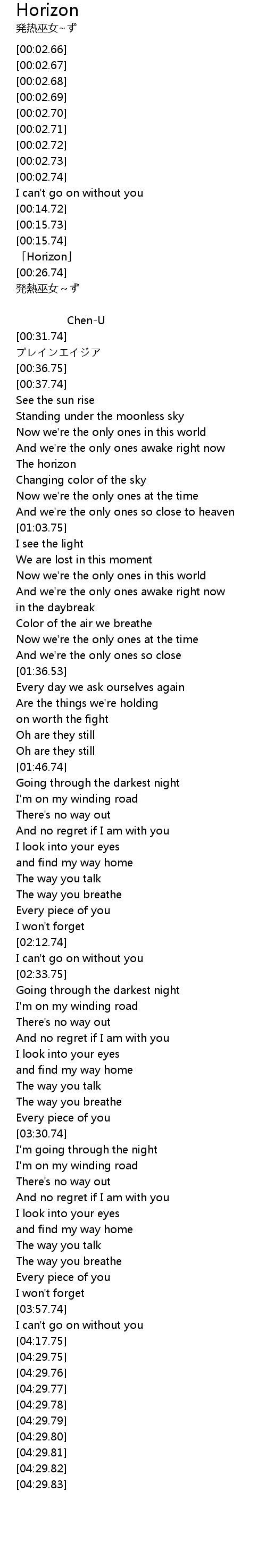 | [00:15.75] | 「Horizon」 |