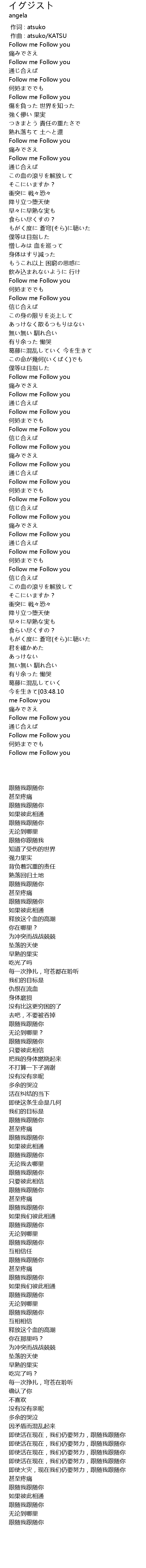 | [03:46.16]今を生きて[03:48.10][03:48.94]それでもまだ[03:51.68]僕等は目指した[03:54.83] | Follow me Follow you |
